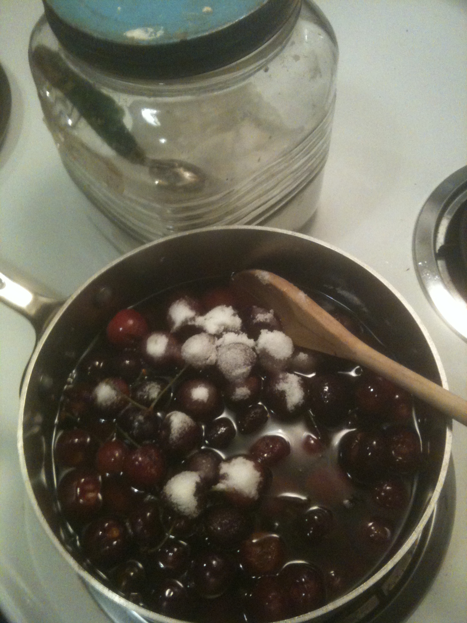 Sweet poaching dark cherries at the river house photo by Leslie Macchiarella