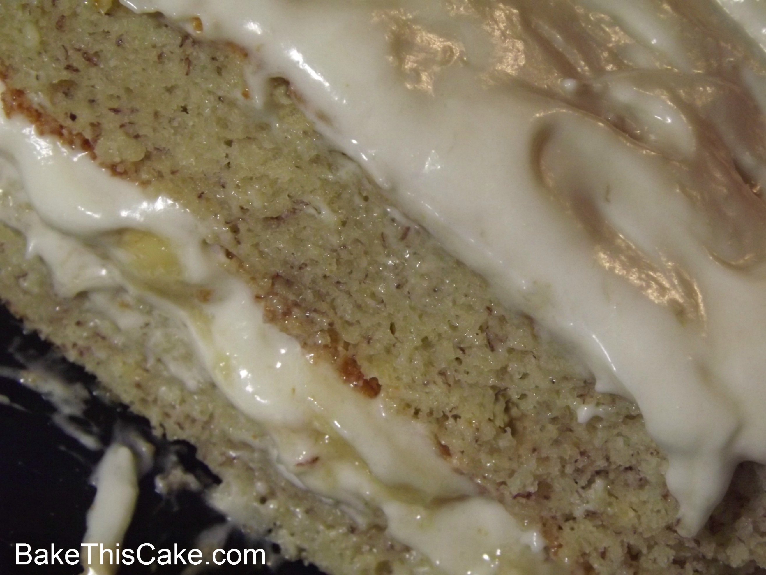 Make sure the banana cake is cool and the bottom layer cake is level before frosting.