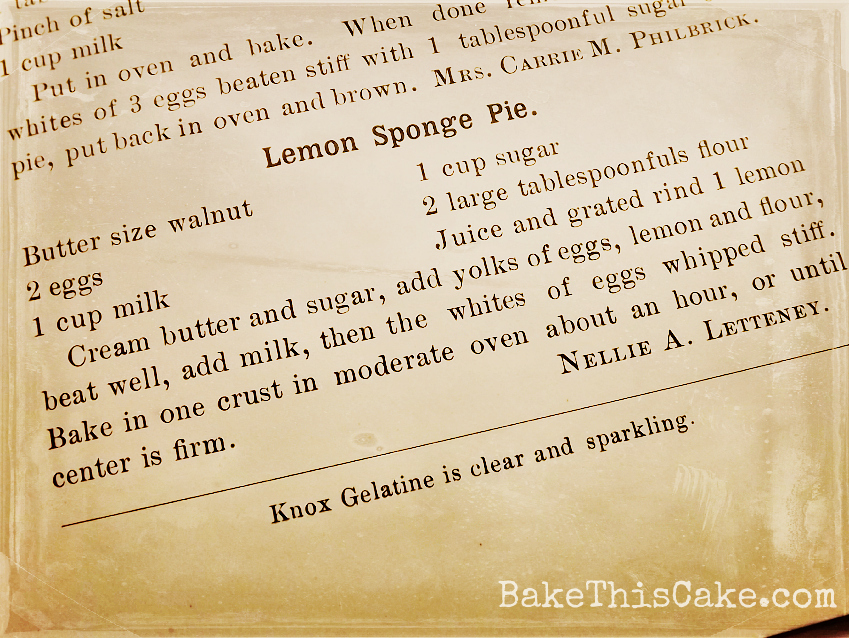 Lemon Sponge Pie recipe from 1913 Kimball School cookbook bakethiscake Published February 17, 2014 at 849 × 638 in A Cozy Vintage Lemon Pudding Cake That Wants to be Inside of You ← Previous Next → Lemon Sponge Pie recipe from 1913 Kimball School cookbook by bakethiscake Share this: Share on X (Opens in new window) X Share on Facebook (Opens in new window) Facebook Share on Reddit (Opens in new window) Reddit Print (Opens in new window) Print Email a link to a friend (Opens in new window) Email Share on Tumblr (Opens in new window) Tumblr Share on Pinterest (Opens in new window) Pinterest Like this:Like Loading...